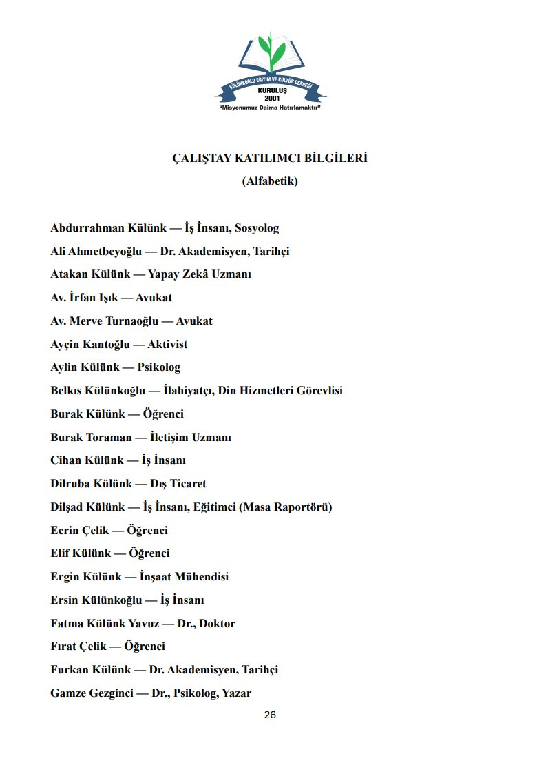 Külünk’ün imzasıyla paylaşılan üst yazıda ise, Anadolu’nun kadim ailelerinden Külünkoğlu Ailesi’nin çatı kuruluşu olan dernek tarafından hazırlanan bu sonuç bildirgesinin kamuoyuna faydalı olması temennisi dile getirildi. Bu yönüyle metin, yalnızca bir çalıştay raporu değil, aynı zamanda aile merkezli yeni bir toplumsal çağrı olarak öne çıkıyor.