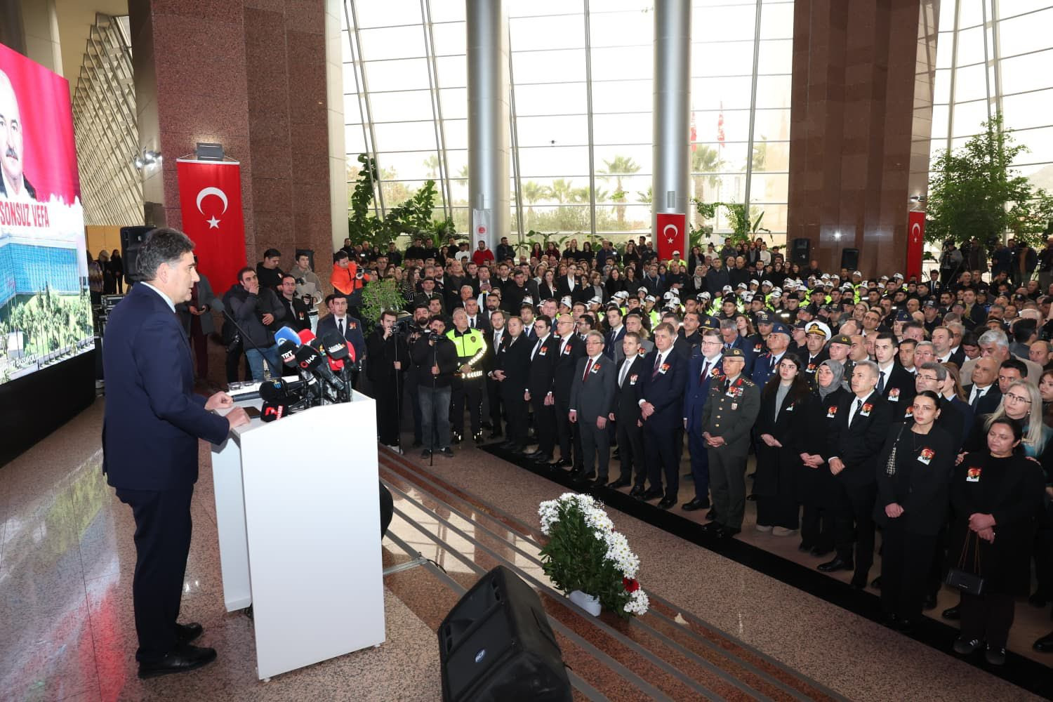 AK Parti İzmir İl Başkanı Bilal Saygılı, İzmir Adliyesi'ne yönelik terör saldırısında şehit olan Polis Memuru Fethi Sekin ve Mübaşir Musa Can için düzenlenen anma törenine katıldı.