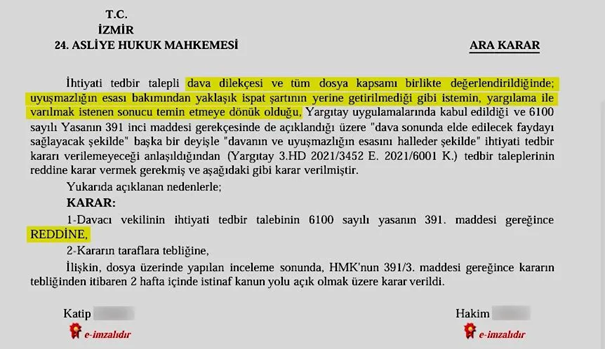 Asliye Hukuk Mahkemesinden Çarpıcı Ara Karar: Sulh Ceza’dan istediğini alamayan Vermez, Asliye Hukuk Mahkemesinde ihtiyati tedbir ve tazminat davası açtı. Mahkeme, Vermez’in “yaklaşık ispat şartını dahi yerine getirmediğini” vurgulayarak tedbir talebini reddetti.