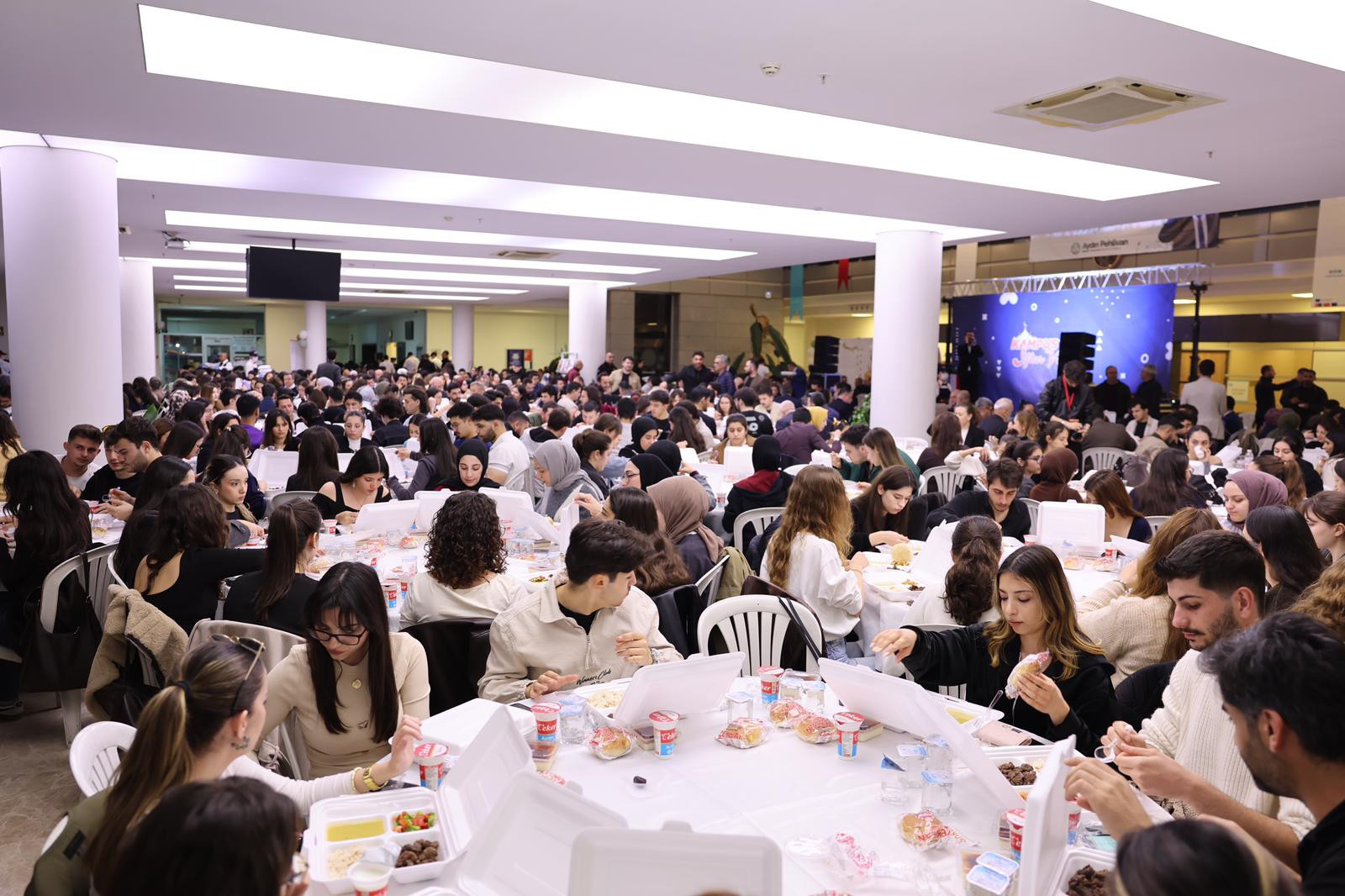 Yoğun katılımla gerçekleşen iftar programı, öğrencilerin ve davetlilerin birlikte oruç açmasının ardından sohbetlerle sona erdi.
