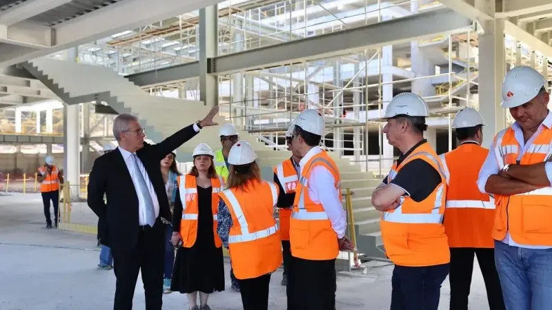 İzmir Ekonomi Üniversitesi’nin (İEÜ) Güzelbahçe’de yapımı devam eden yeni kampüsünde inşaat çalışmaları tüm hızıyla sürüyor. İzmir Ticaret Odası (İZTO) Başkanı ve aynı zamanda İEÜ Mütevelli Heyet Başkanı Mahmut Özgener, kampüs alanında yapılan şantiye ziyaretinde yetkililerden çalışmalar hakkında bilgi aldı.
